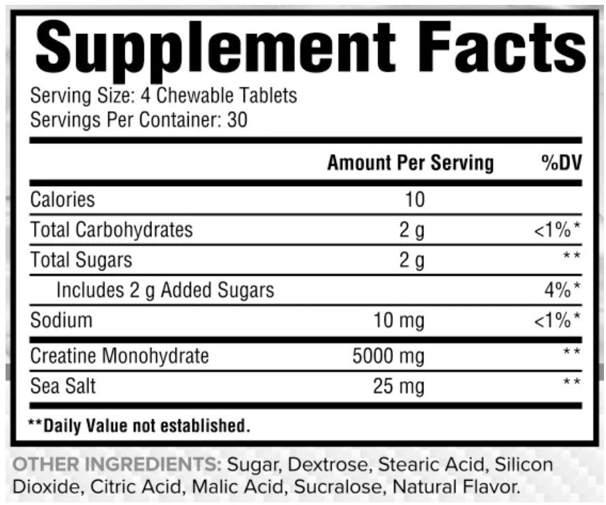 5g Creatine Monohydrate – Strength, Power & Performance in a Convenient Chew