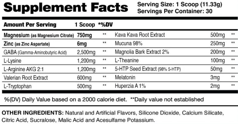 Dosage: Mix one scoop (10g) with 6-8 oz of warm water and consume 25-30 minutes before bedtime. Avoid operating heavy machinery after use.